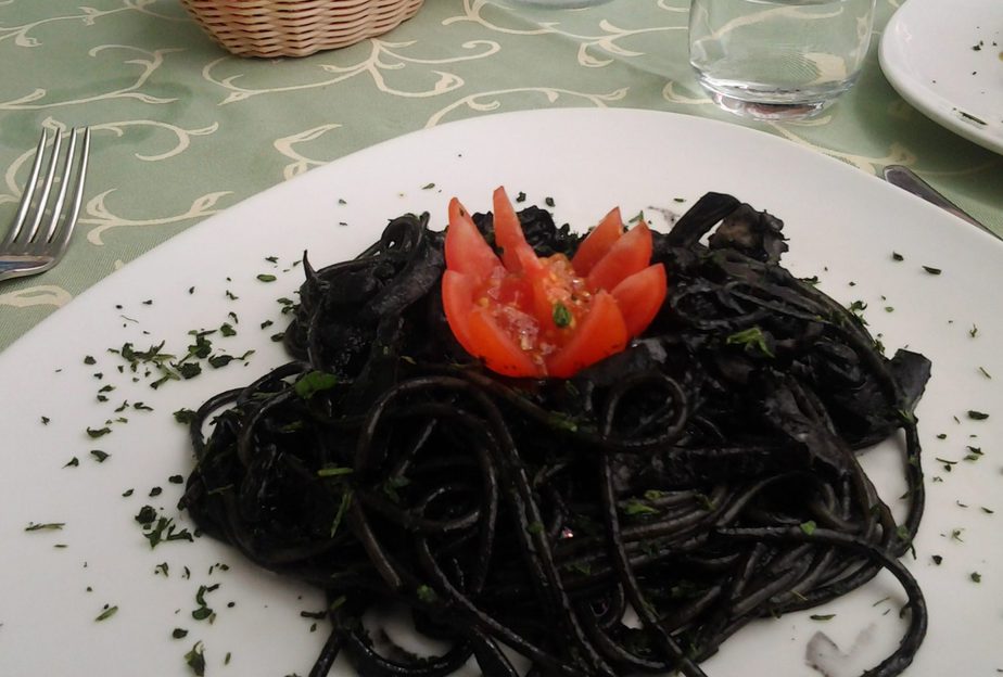 Já o que não agrada todos os paladares e tem um aspecto estranho é a massa com tinta de lula, um molho preto feito da própria tinta do animal, que tem um gosto muito forte.