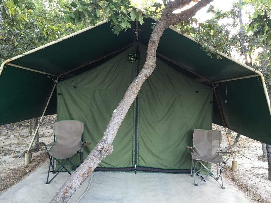 Começando pela hospedagem, ficamos no chamado Safari Camp, uma espécie de acampamento de luxo da própria Korubo (a empresa que nos levou). Localizado em uma área de preservação do Parque Estadual do Jalapão, o local é muito bom e tem uma estrutura melhor que muito hotel por aí. Cada tenda tem duas camas e um banheiro com pia e privada, mas o chuveiro fica do lado de fora e é equipado com aquecimento solar. Na primeira noite estranhamos um pouco, pois durante a madrugada venta muito e o barulho assusta, mas sobrevivemos! rs
