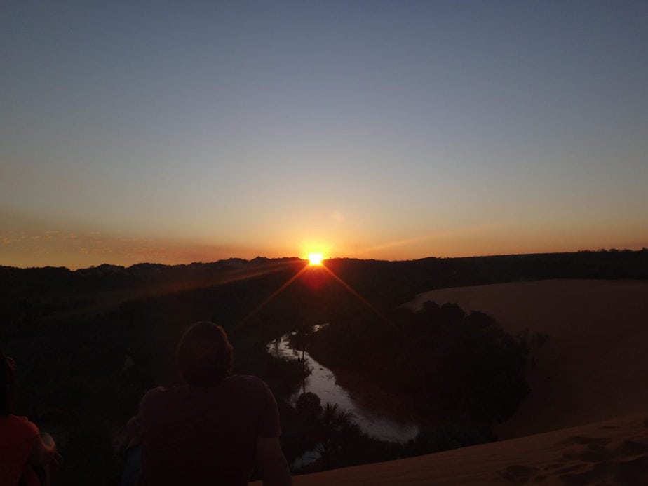 No período da tarde fomos conhecer as Dunas do Jalapão (2h30 saindo do acampamento), que são formadas pelas falésias na costa da Serra do Espírito Santo. O visual é incrível! Assistir ao pôr do sol ali é uma experiência fantástica.