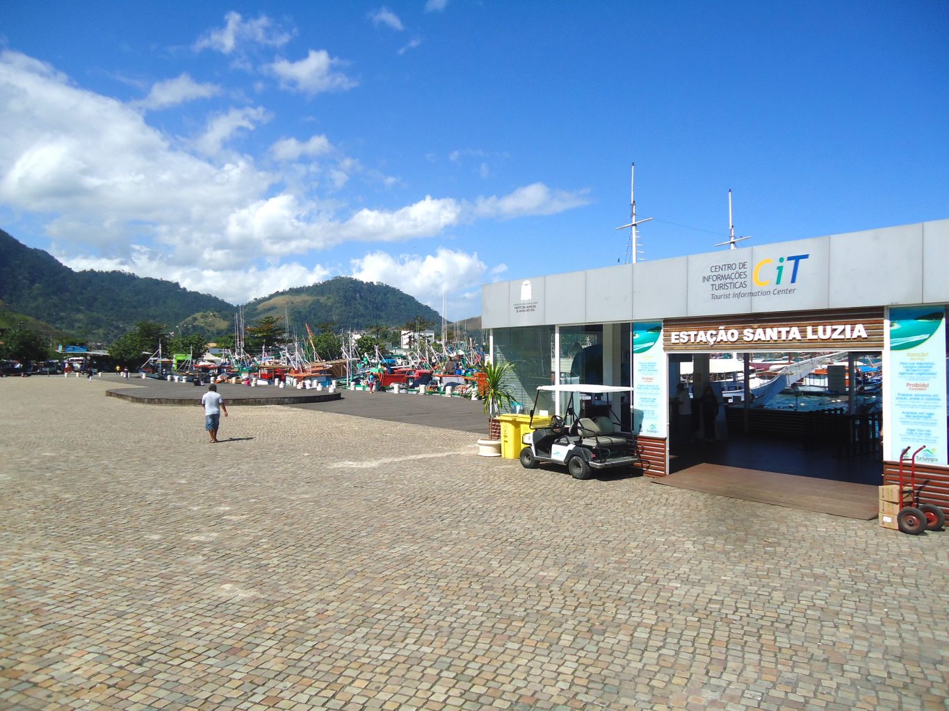 Mesmo usando GPS, não tínhamos o endereço do porto nem do estacionamento, por isso não conseguimos encontrar as palavras “porto de Angra dos Reis”, ou “pier”, ou qualquer coisa do tipo na busca do GPS. Rodamos por algum tempo e pedimos informações várias vezes, mas ninguém parecia saber informar corretamente, até que alguém mencionou algo parecido com corredor turístico e foi aí que deu certo.