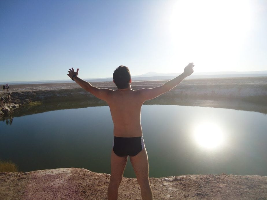 Onde é possível nadar sem afundar! A lagoa fica em uma planície formada por sal e tem uma concentração tão grande que seu corpo bóia sem que você faça esforço nenhum. É muito divertido e vale a visita! Perto dali ficam os Ojos del Salar, duas piscinas naturais em formato de círculo, com água doce e muito gelada, onde é possível mergulhar.