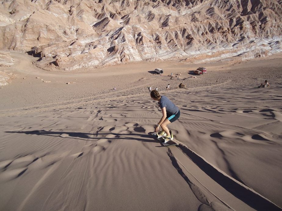 O Valle de la Muerte é um lugar inóspito, com dunas onde fizemos sandboard. A experiência foi muito divertida! Os gringos que já estão acostumados com snowboard tiravam de letra, mas nós tomamos vários capotes e ficamos com areia até dentro da orelha. haha