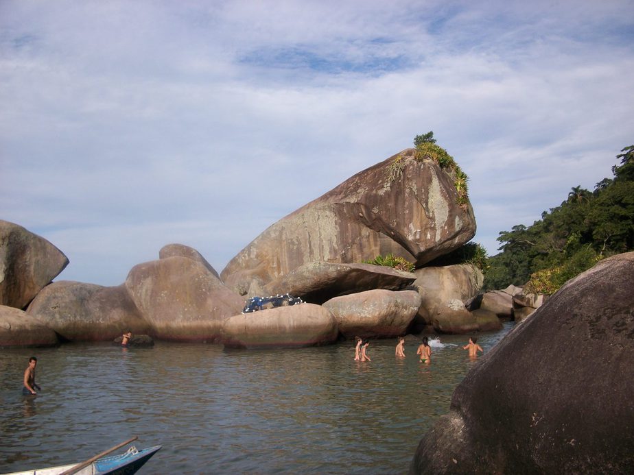 No primeiro dia da nossa viagem para Paraty nós fomos para Trindade, uma vila de pescadores que fica a 30 km do centro de Paraty e reúne 6 praias e uma cachoeira conhecida como pedra que engole por causa do formato: tem uma caverninha que passa por baixo dela e você sai do outro lado, mas nós não tivemos tempo.=(
