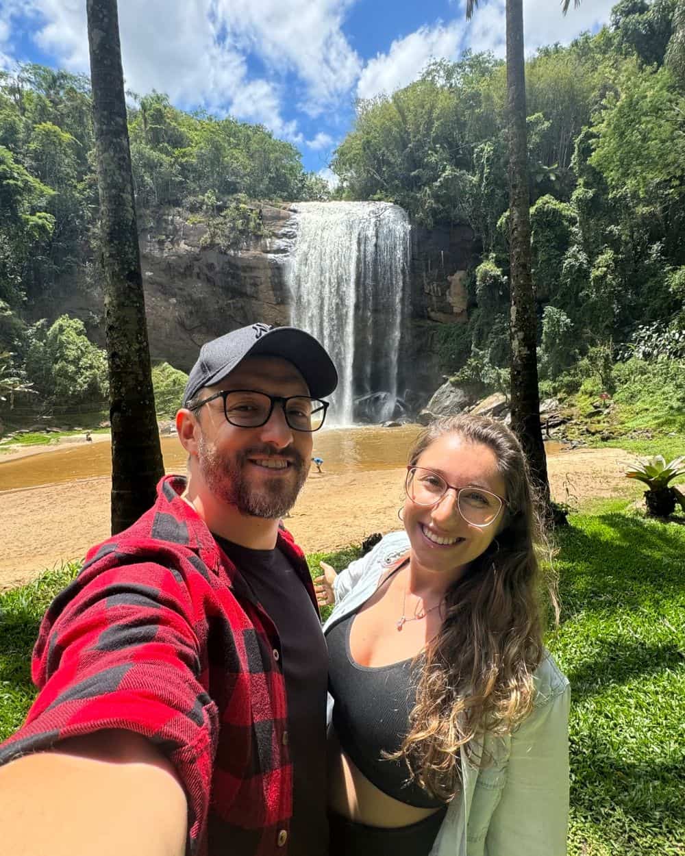 Em volta da cachoeira é tudo verde, são mais 20 mil metros quadrados de mata nativa, o que deixa a paisagem ainda mais linda. Série, a gente já tinha ida há muitos anos, mas não lembrávamos como era lindo esse lugar.